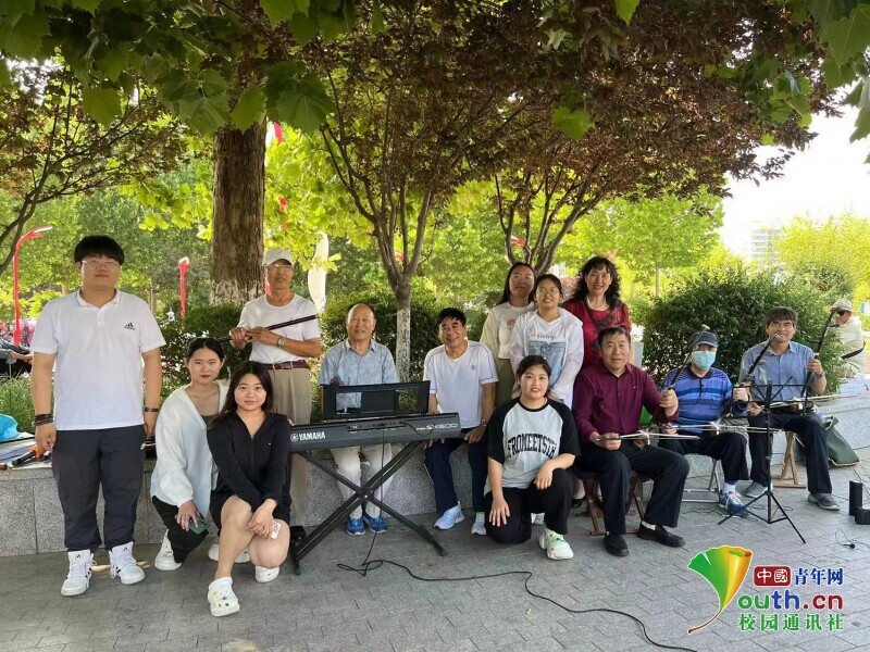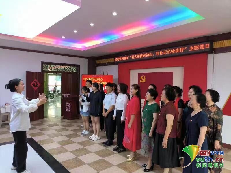 图为实践队员在青馨家园社区与居民一起开展文艺活动。中国青年网通讯员 王屹兵 供图